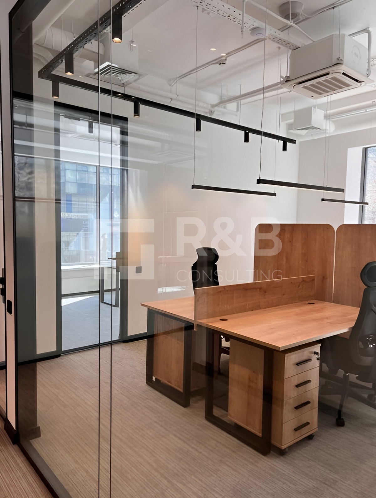 Офисное помещение с дизайнерским ремонтом и мебелью.