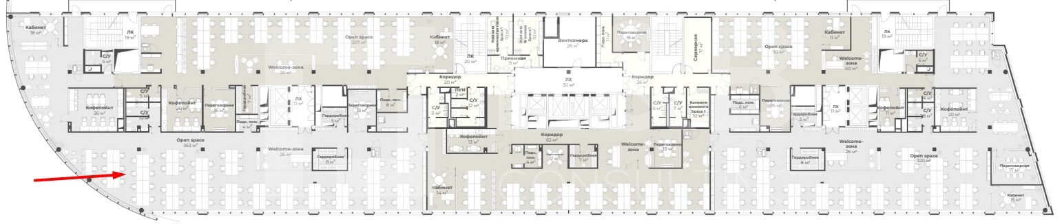 Аренда коворкинга 489 кв. м в бизнес-центре «Северное сияние» (класс B+).