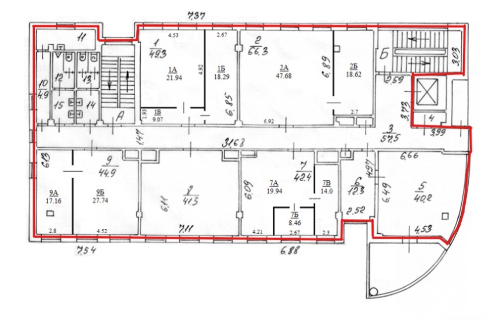 Тип планировки - кабинетная.