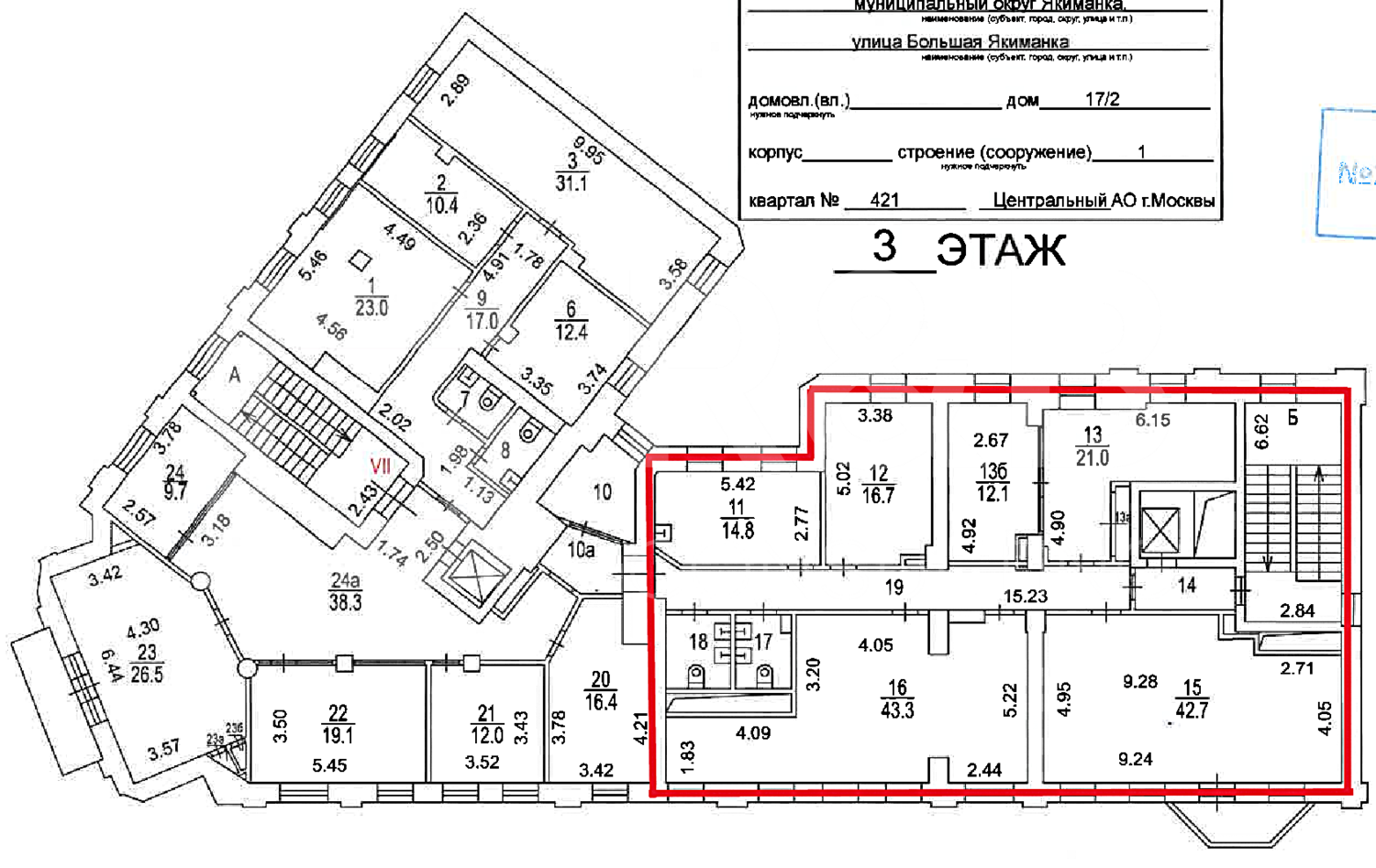 Аренда офиса 214.8 кв. м в бизнес-центре «Якиманка» (класс B+).